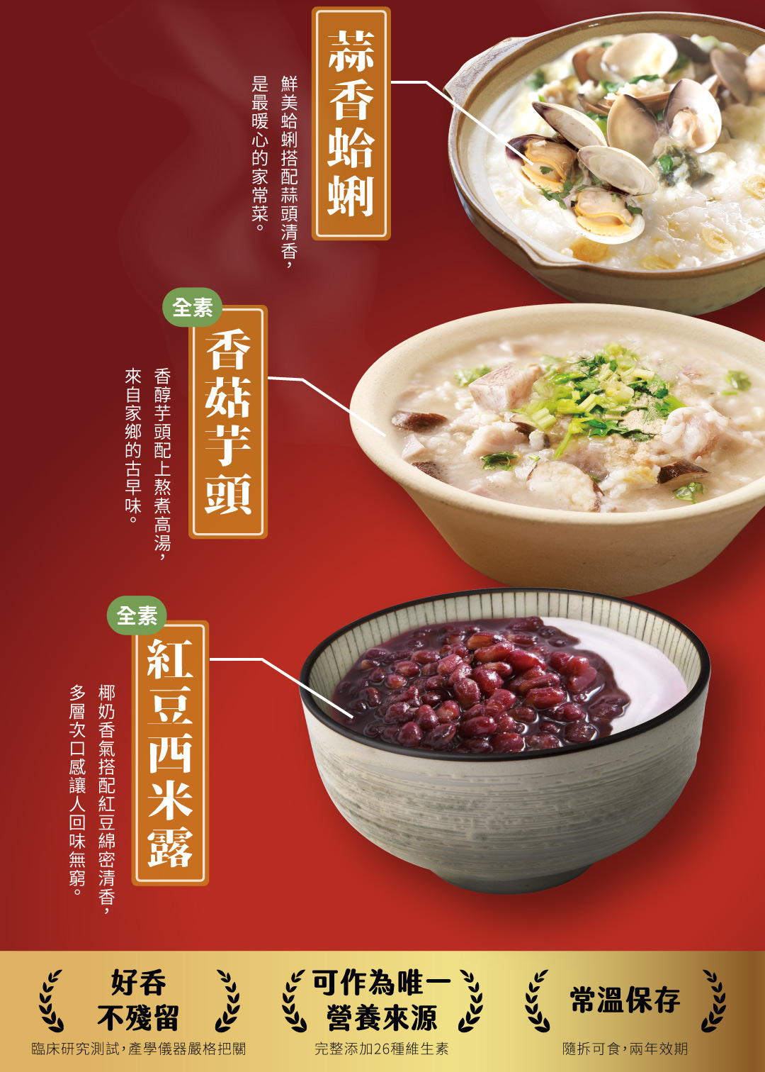 3. 成分:水、紅豆、麥芽糊精、赤藻糖醇、黑糖、芥花油、豌豆蛋白、難消化糊精、椰漿粉(椰漿、麥芽糊精、乾酪素鈉)、玉米糖膠、礦物質(綜合礦物質(磷酸氫鈣、檸檬酸鈉、碳酸鈣、氯化鉀、鉻酵母(非活性酵母、三氯化鉻)、焦磷酸鐵、麥芽糊精、硒酵母、碘化鉀)、磷酸鎂、硫酸鋅、硫酸銅)、維生素(重酒石酸膽鹼、綜合維生素(維生素C、啤酒酵母(含維生素D2)、維生素 E(乙酸dl-α -生育醇酯、乾燥葡萄糖漿、辛烯基丁二酸鈉澱粉、二氧化矽)、菸鹼醯胺、麥芽糊精、維生素A醋酸鹽(乾燥葡萄糖漿、阿拉伯膠、玉米澱粉、維生素A醋酸鹽、維生素E(抗氧化劑))、本多酸鈣、維生素B12(麥芽糊精、檸檬酸鈉、檸檬酸、維生素B12)、維生素K1(阿拉伯膠、維生素K1、蔗糖)、維生素B1、維生素B6、維生素B2、葉酸、生物素)、酵母維生素D)、鹿角菜膠、羅漢果萃取物