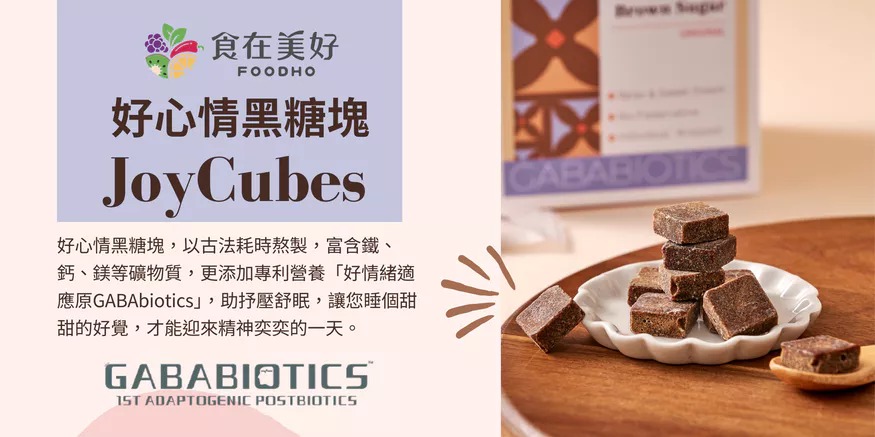 【食在美好】FOODHO 好心情黑糖塊,創新研發,每顆黑糖塊添加專利研發的「GABABIOTICS好情緒適應原」,其精挑自特殊乳酸菌株(LBR146),採用天然生物發酵及特殊熱激化技術之後生元,含有GABA活性,有助於穩定情緒、幫助睡眠。古法熬製黑糖、真材實料,無防腐劑,醇香不膩。