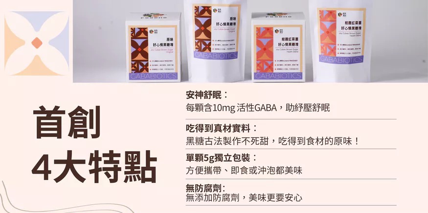 7. *本產品添加GABAbiotics,單顆黑糖塊GABA有效含量達10mg,每日建議攝取量為100mg