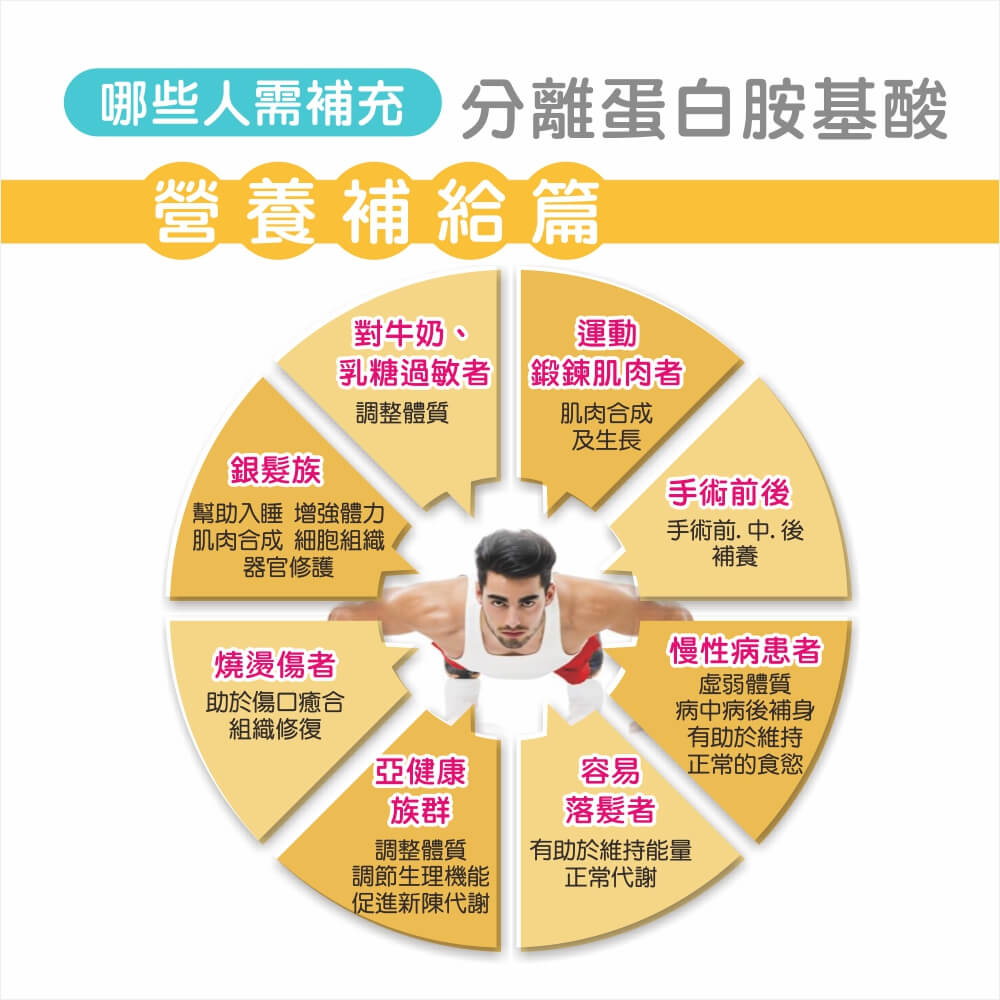 人人均可補充涵本的植物性大豆分離蛋白,其含有18種人體胺基酸及多種礦物質,讓你健康零負擔。建議人人均可補充,尤其銀髮族(因其對動物性蛋白質的吸收很弱)、素食族群---可選擇涵本的大豆分離蛋白來取代動物性蛋白質的需求。因其植物性,不含普林,且經高科技分離技術,易為人體吸收。