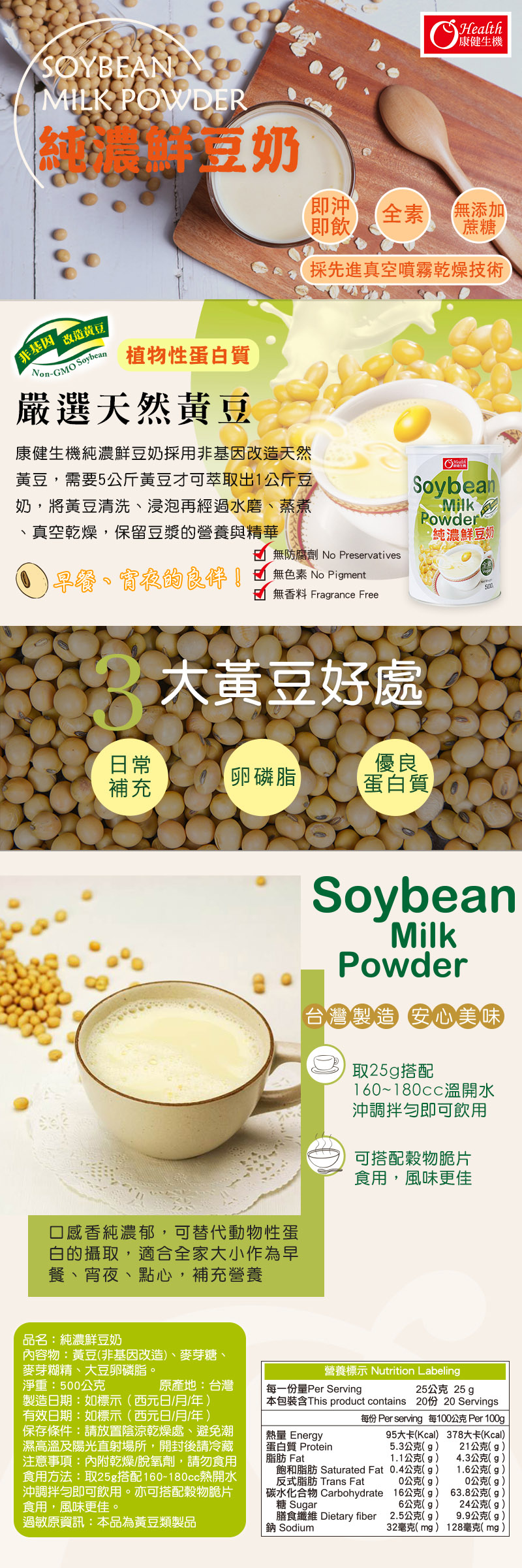 6. 成分:黃豆(非基因改造)、麥芽糖、麥芽糊精、大豆卵磷脂。