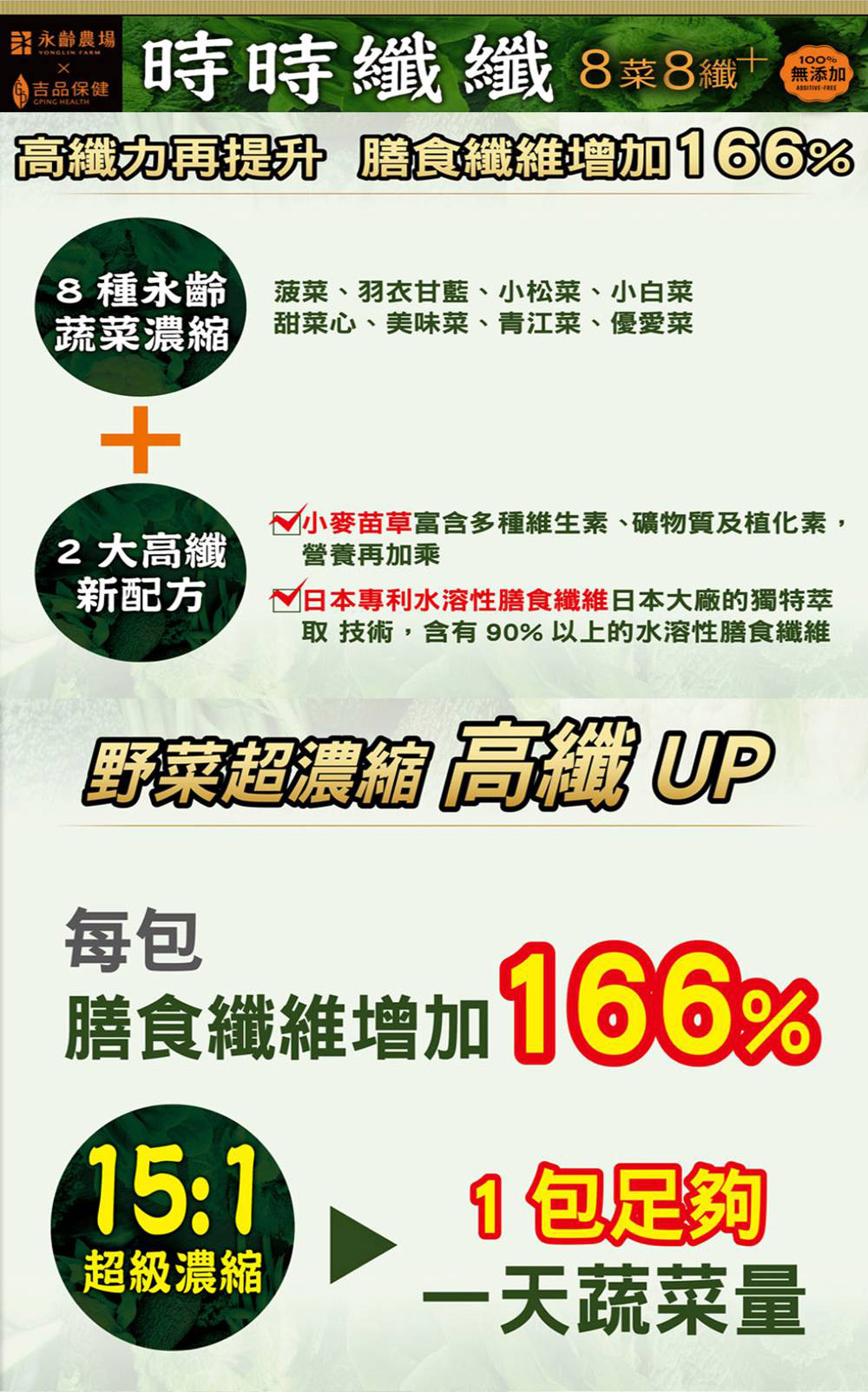 至2025-12-08T16:00:00.000+00:00截止 指定商品,2025週年慶【永齡農場 時時纖纖 野菜青汁 高纖Plus+】3組特惠價6936元