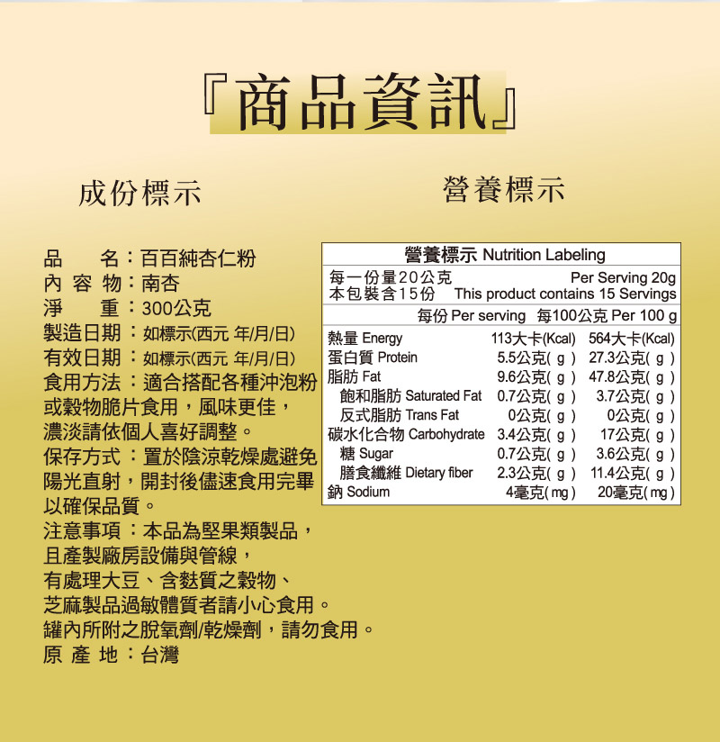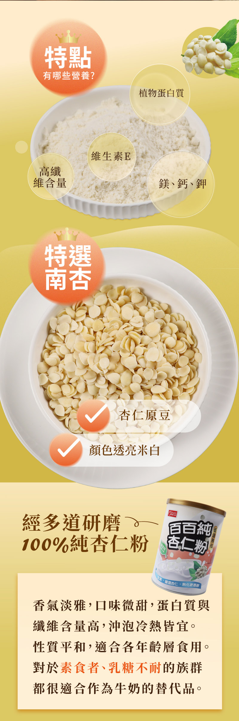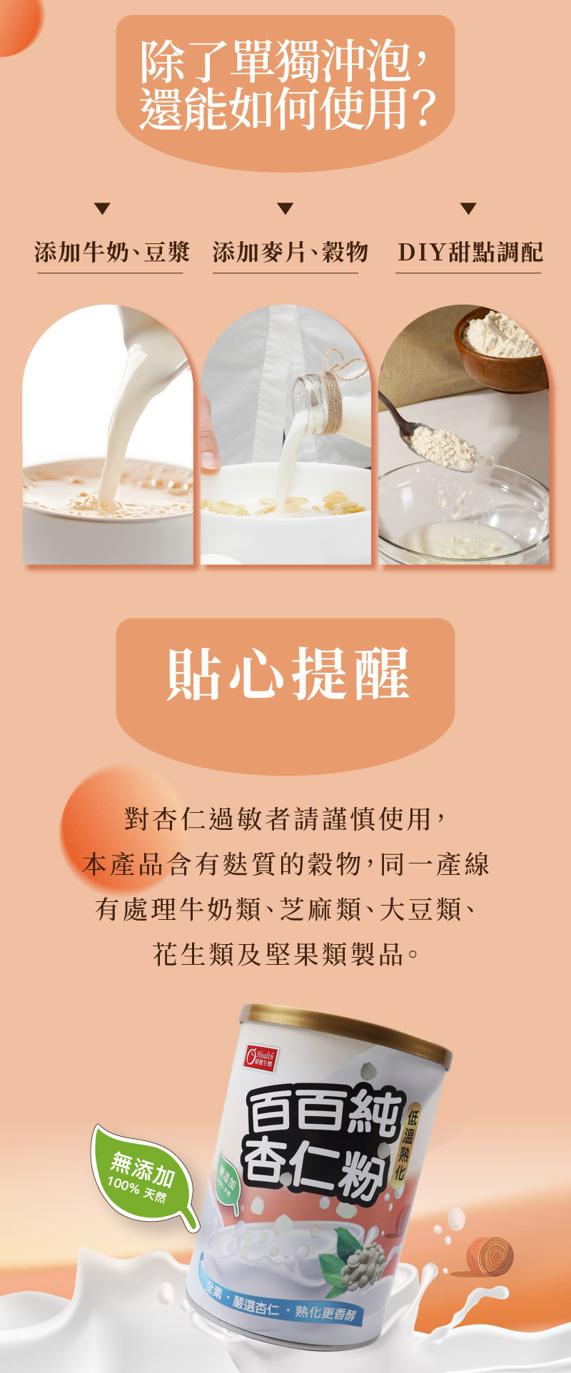 ★特選南杏,全程低溫烘焙,經多道研磨100%純天然杏仁粉。