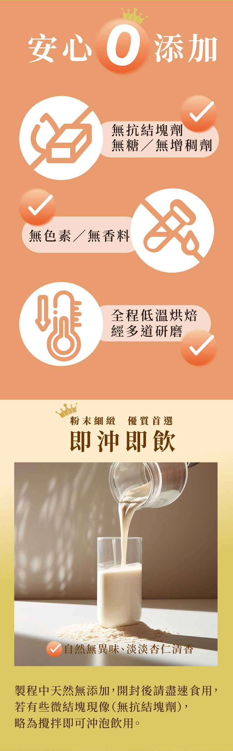 4. 食用方法:適合搭配各種沖泡粉或穀物脆片食用,風味更佳,濃淡請依個人喜好調整。
