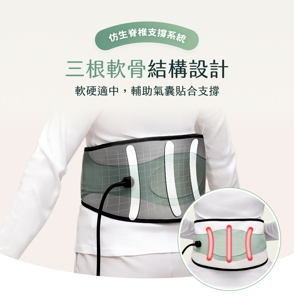 1. 氣囊充氣貼合腰部曲線,有效支撐分散壓力