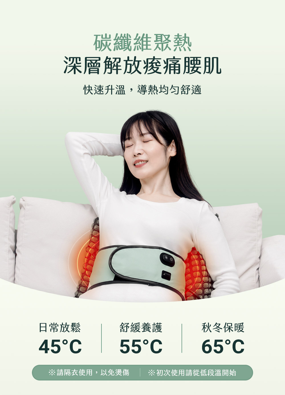 2. 碳纖維熱敷快速升溫,三段溫感深層舒緩