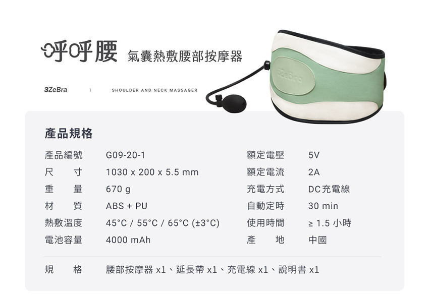 【3ZeBra】呼呼腰|氣囊熱敷腰部按摩器【P1MG0011GRN0000】