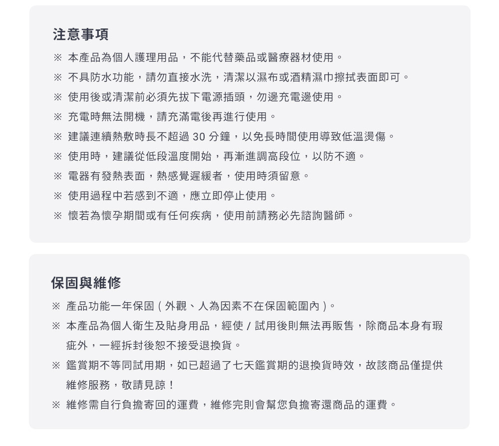 5. 熱敷溫度:45°C/55°C/65°C (±3°C)