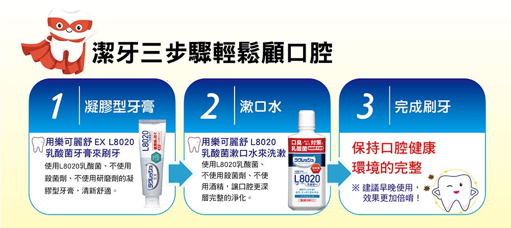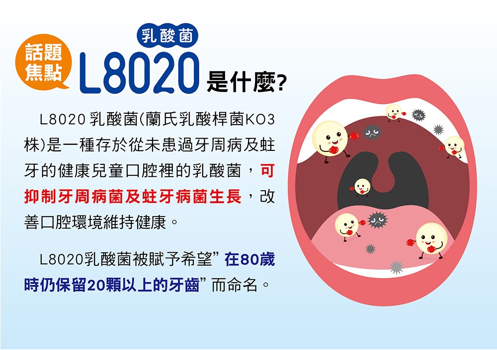 ※ L8020乳酸菌,平衡口腔環境,消除壞菌