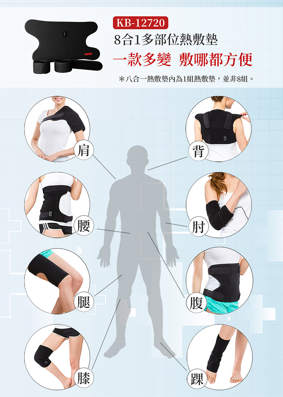 【+venture】速配鼎 KB-12720 八合一多部位 (速配鼎醫療用熱敷墊-未滅菌)【P1TL0039BLK0000】