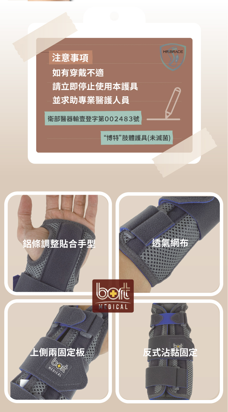 1. 中文品名:"博特" 肢體護具 (未滅菌)