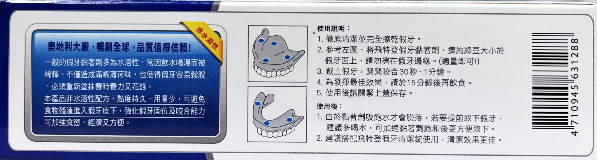 1. 中文品名:“飛特登”假牙黏著劑 (未滅菌)