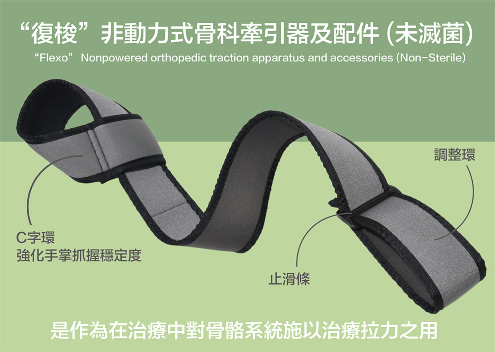 2. 英文品名:“Flexo” Nonpowered orthopedic traction apparatus and accessories (Non-Sterile)