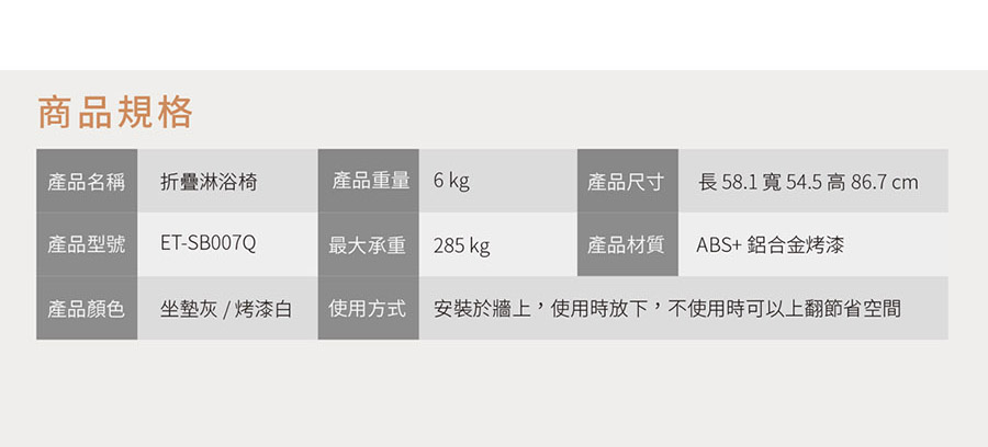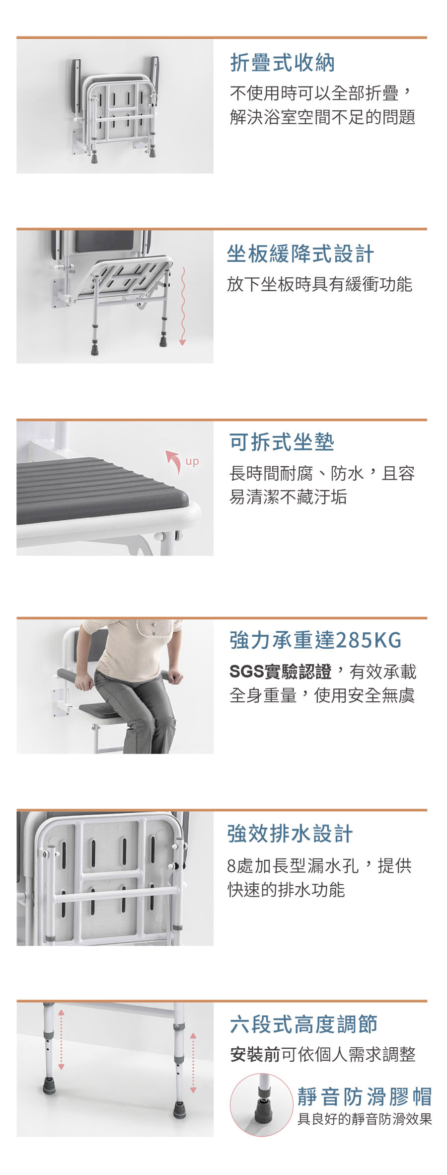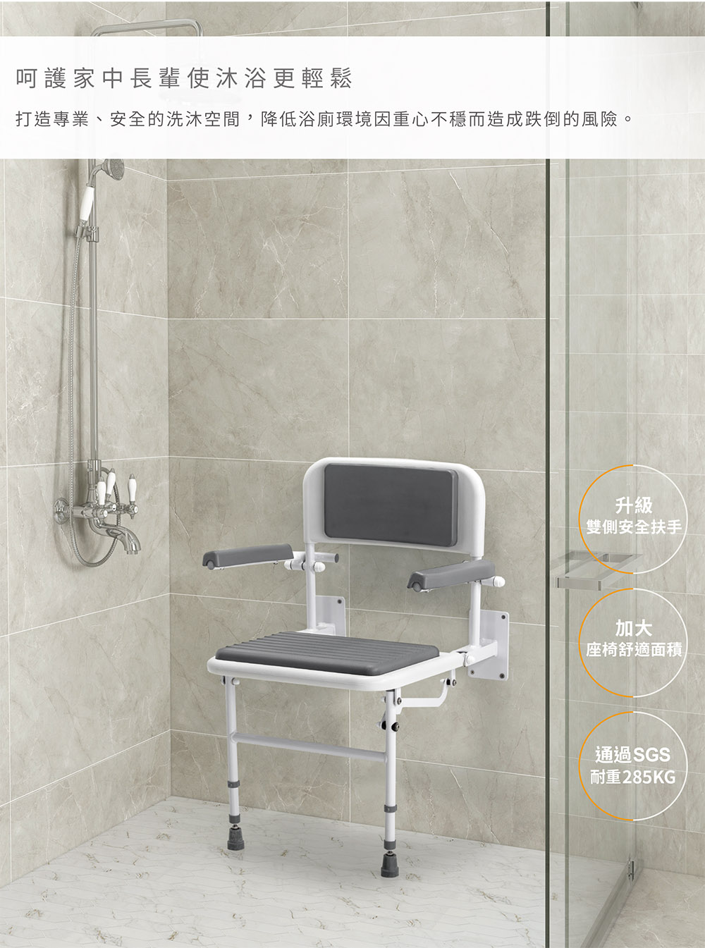 1. 此產品符合長照2.0/身心障礙者輔具補助項目【壁掛式淋浴椅】