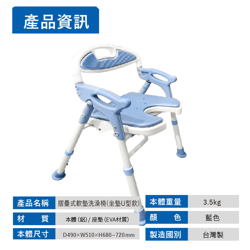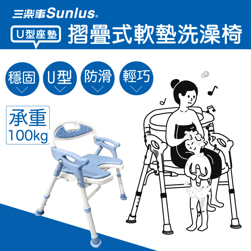 【Sunlus】三樂事 摺疊式軟墊洗澡椅 (U型座墊款)【R1BT6465LBL0000】