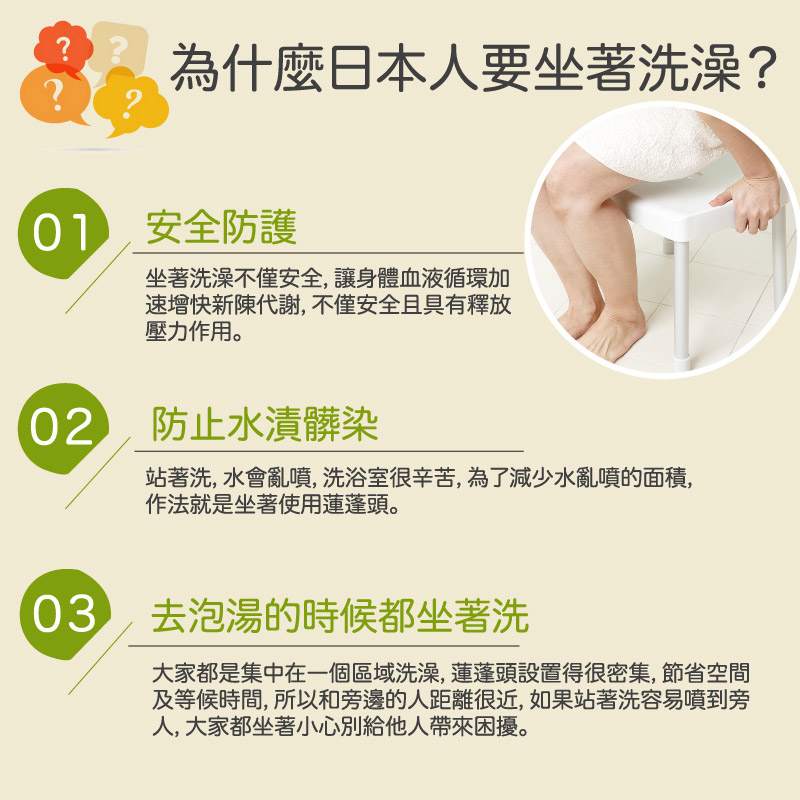 體貼您的長輩,為他準備一個可以坐著洗澡的椅子,安全又舒服。您的用心,會讓他更安心。
