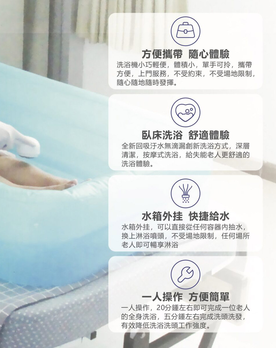 洗澡不再是難題,輕鬆守護長輩清潔舒適!家人長期臥床、行動不便,每次要洗澡都是一大工程,移動到浴室好辛苦,不僅臥床者本身不舒服,照顧者也會腰酸背痛,還要擔心過程中跌倒,有沒有甚麼解決方案呢?