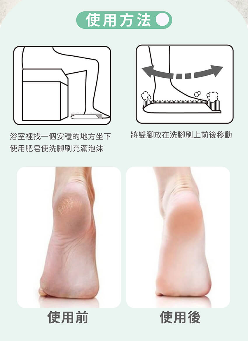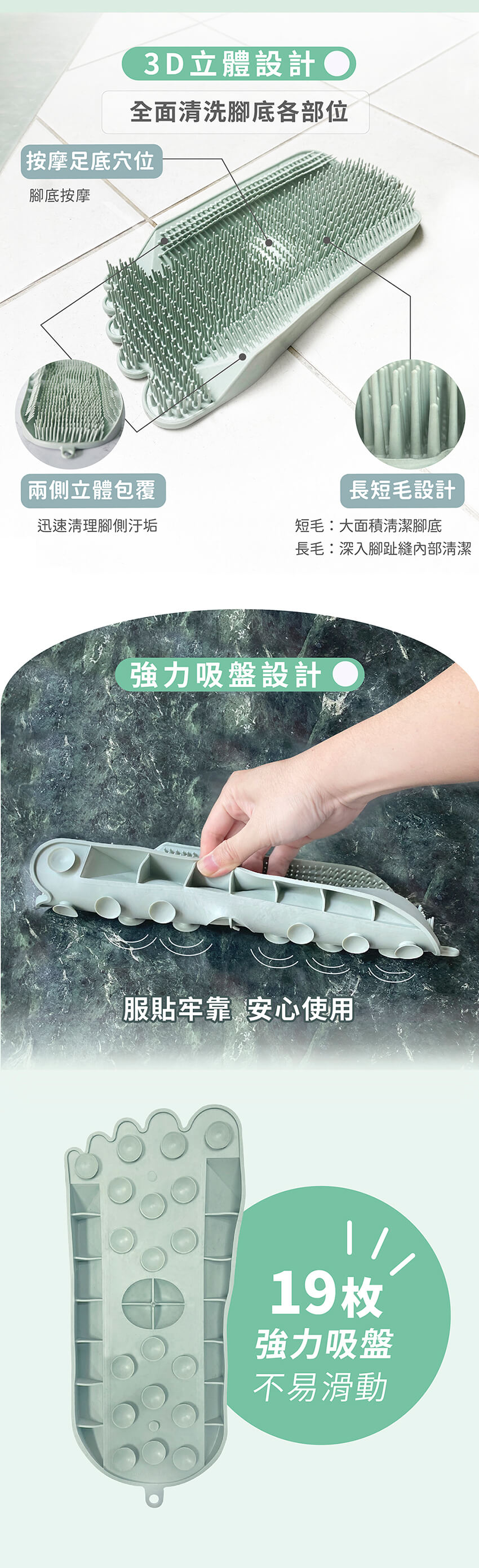 1. ★3D立體刷毛設計可快速清潔同時按摩腳底。