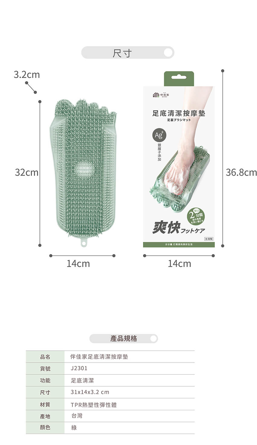 【伴佳家】足底清潔按摩墊【R1BT6615GRN0000】每日2分鐘 洗腳兼按摩