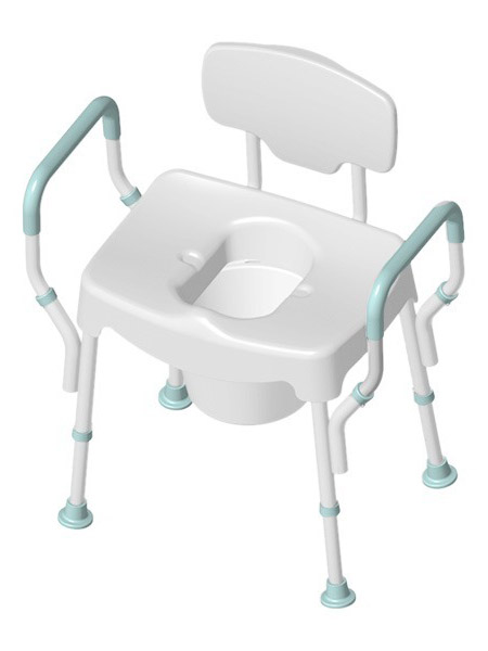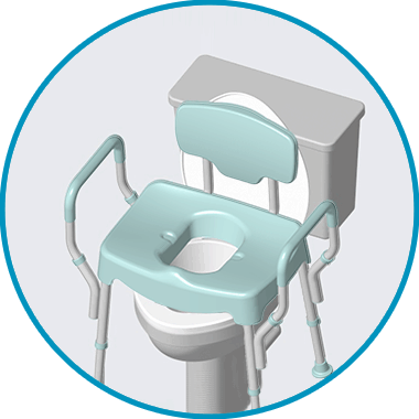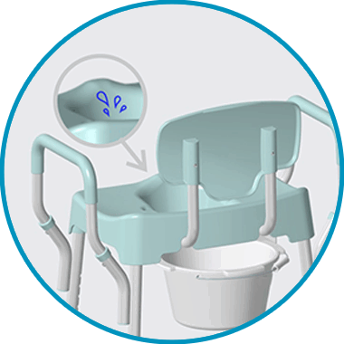 移除便桶與坐墊蓋,擺放馬桶上方,可作為馬桶增高器,兩側扶手輔助上下起身