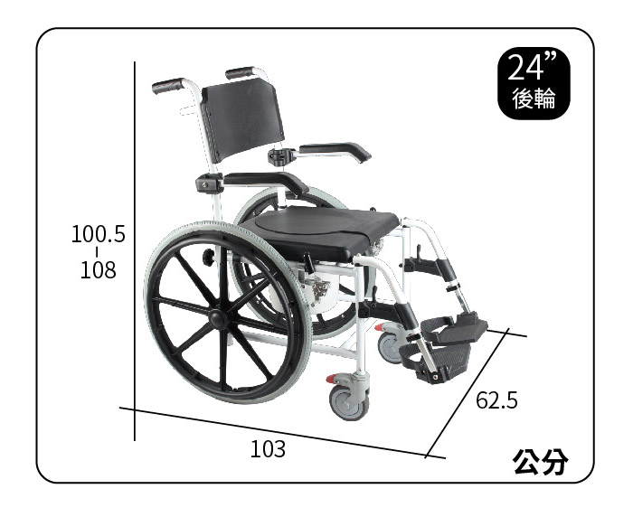 【RKD】3合一室內輪椅便盆洗澡椅 24吋輪 B(A)款【R2BT6408BLK0000】