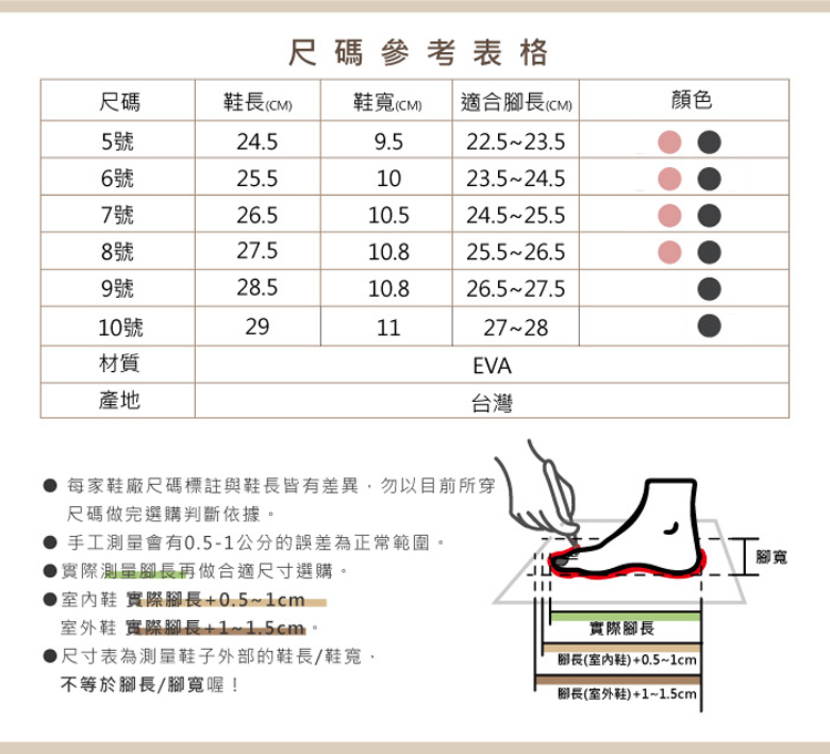 • 7號 - 鞋長 26.5cm / 鞋寬 10.5cm / 適合腳長 24.5~25.5 cm