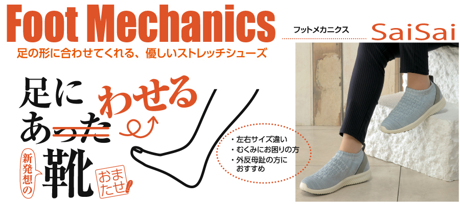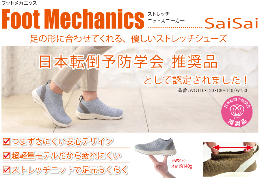 【SaiSai】Foot Mechanics 休閒鞋 No.WG110,給你就像穿襪子般的舒適感!伸縮網布鞋面,如同吸附在腳上一樣的貼合,無論什麼腳型或如何運動,都能毫無壓力地貼合。特別推薦給左右腳不同尺寸、腳部有水腫困擾、姆趾外翻者喔!