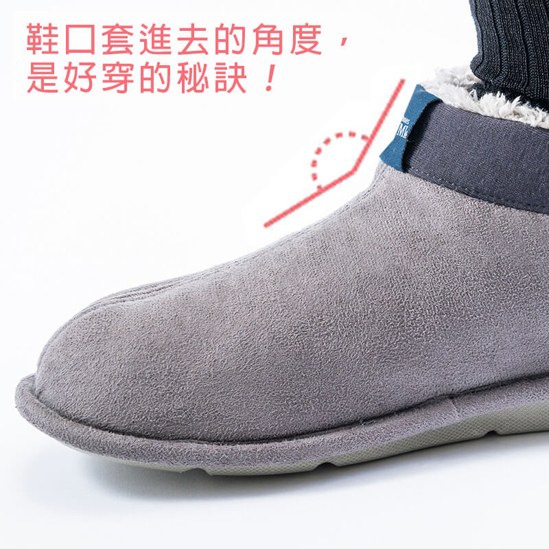 立體鞋墊貼合足底、搭配大開口設計,一體成型快速套上即刻保暖,