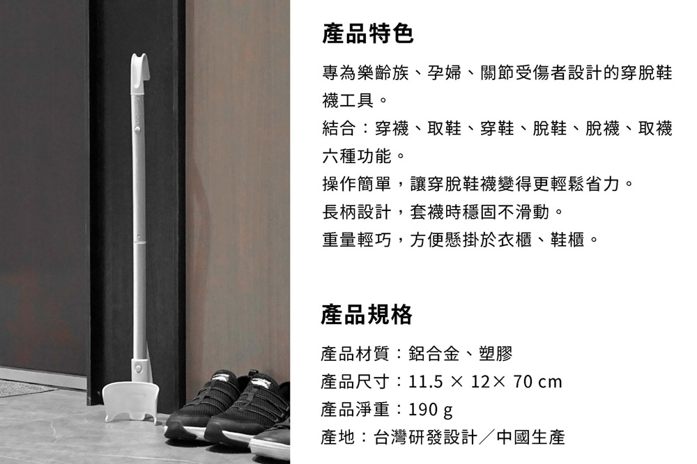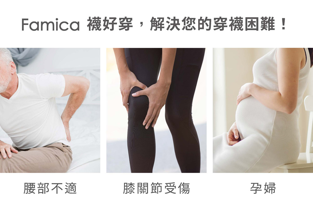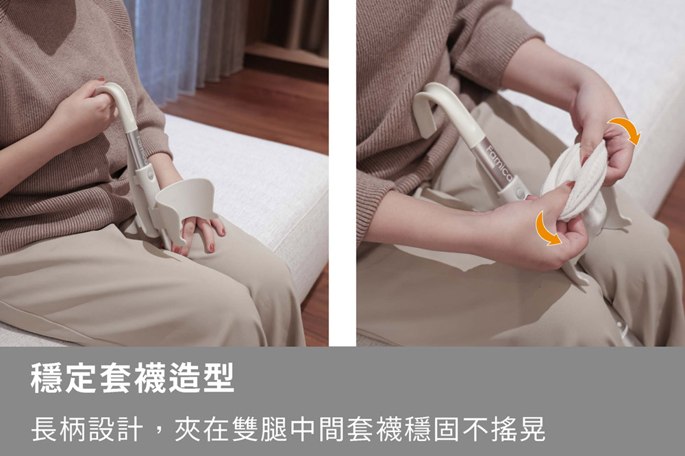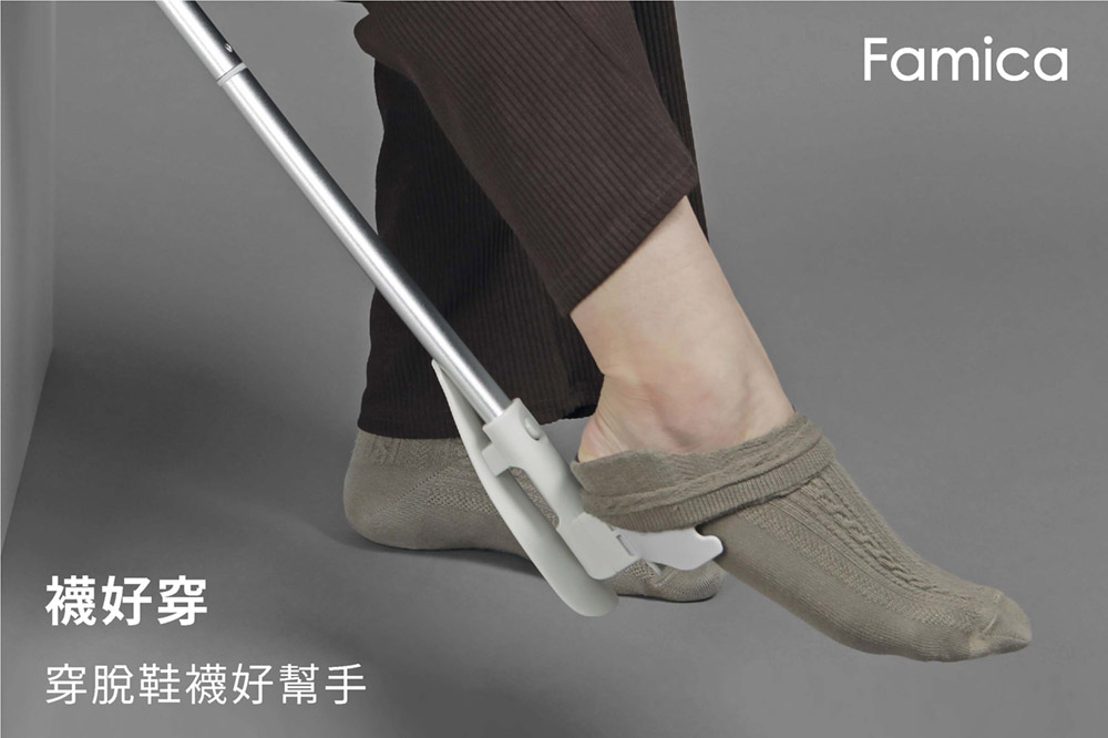 許多年長者或有關節炎的人,由於彎腰或屈腿的動作較不方便,因此在穿襪時常需要他人的協助,推薦使用【FAMICA】襪好穿,自己便能輕鬆穿脫襪子、穿脫鞋子,享有獨立自主的生活。