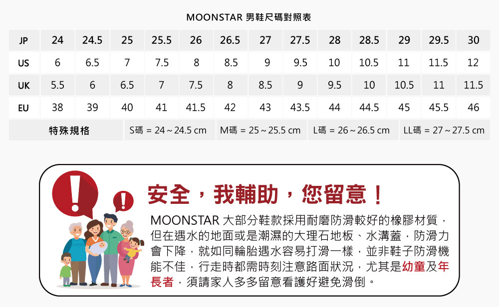 | 歐規/EU | 美規/US | 英規/UK | 台灣/TW | 日規/JP (=足長cm) |