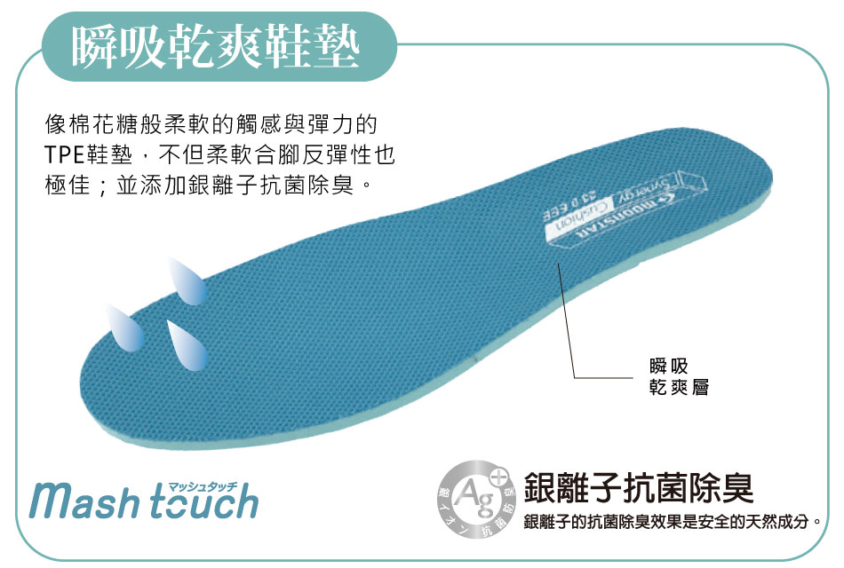 鞋墊網布,可以快速吸收和擴散汗水和濕氣,保持鞋內乾燥。