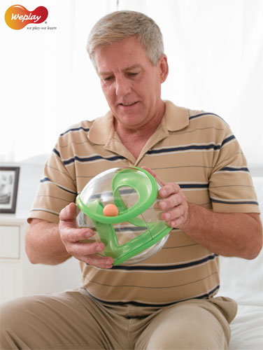 運用球中球的設計概念,球內軌道以中國文化線條展延出一個趣味空間,球體外觀是透明材質,使用者需用雙手握球運轉,控制小球如何在軌道中持續滾動。 這個球融合了協調、對稱、循環的設計理念,開啟了全新的遊戲樂趣與現代感的視覺感受。透明的球體可以觀察小球在軌道繞行的狀況,刺激視覺感官,增進眼球追視能力。運轉球的過程中可以促進手腕動作靈活,進而帶動全身性的肢體律動,提升專注力,活化肌肉發展;並透過自我挑戰,增進自信心與反應力。