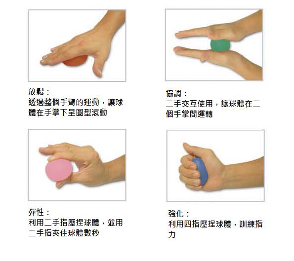 把此用具放在手掌上,用力按壓球訓練你的肌肉能力,促進血液循環,達到健身效果