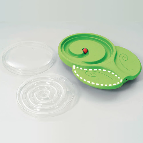 2.加上透明軌道放在底板上,看球是否能在上下兩層的軌道中運轉,體驗小球進洞的成就感。(可加上罩蓋,防止小球在進行中滾遠)