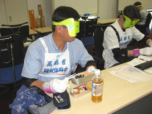 本課程並不是在教導學員如何照顧高齡者的起居飲食,而是在教導學員如何成為一個有「殷勤款待之心」的「安心服務介助員」,來協助高齡者自立自助,提昇其生活品質。| 第一天 | 說明會 討論 (高齡者是什麼樣的人) 模仿高齡者的體驗 休息 討論(對體驗之感想) 何謂Gerontology (創齡學) 協助高齡者與身體障礙者之同理心與服務介助知識訓練 輪椅的操作方法演習移乘訓練 導盲犬、導聽犬、輔助犬 全方位無障礙設計與產品 |
