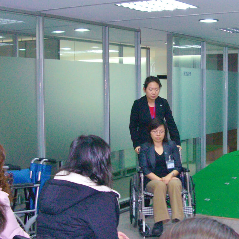 | 第二天 | 如何協助聽覺障礙者 如何協助行走有障礙者 如何協助視覺障礙者與練習 輪椅操作及視障者定向行動訓練 休息 總合演練 總結 |