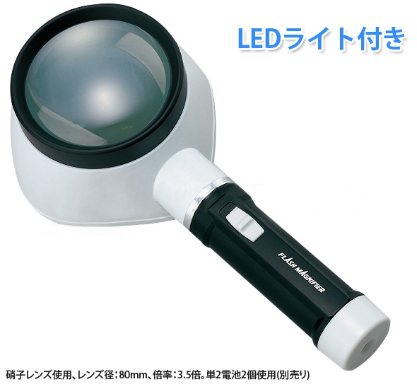 ↑使用玻璃製放大鏡片,鏡片直徑80MM,倍率3.5倍,使用2號乾電池兩顆(需自行購買)