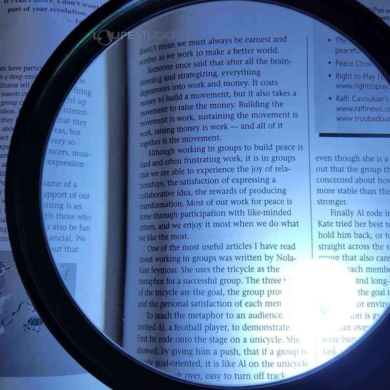 閱讀是一件美好的事,可是年長者視力退化,閱報看書經常感到很吃力,若用一般放大鏡,鏡面太小,看報紙要一直移動放大鏡,若在光源不足的地方看書,眼睛會很不舒服。