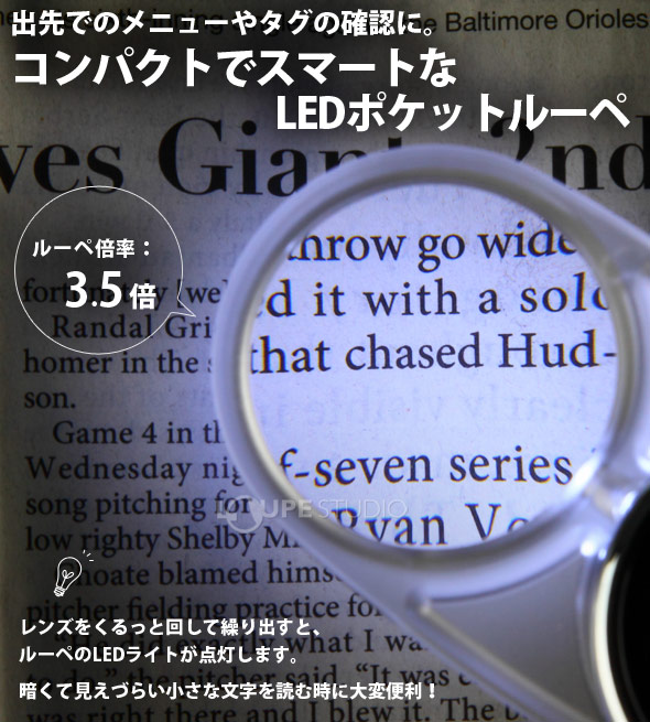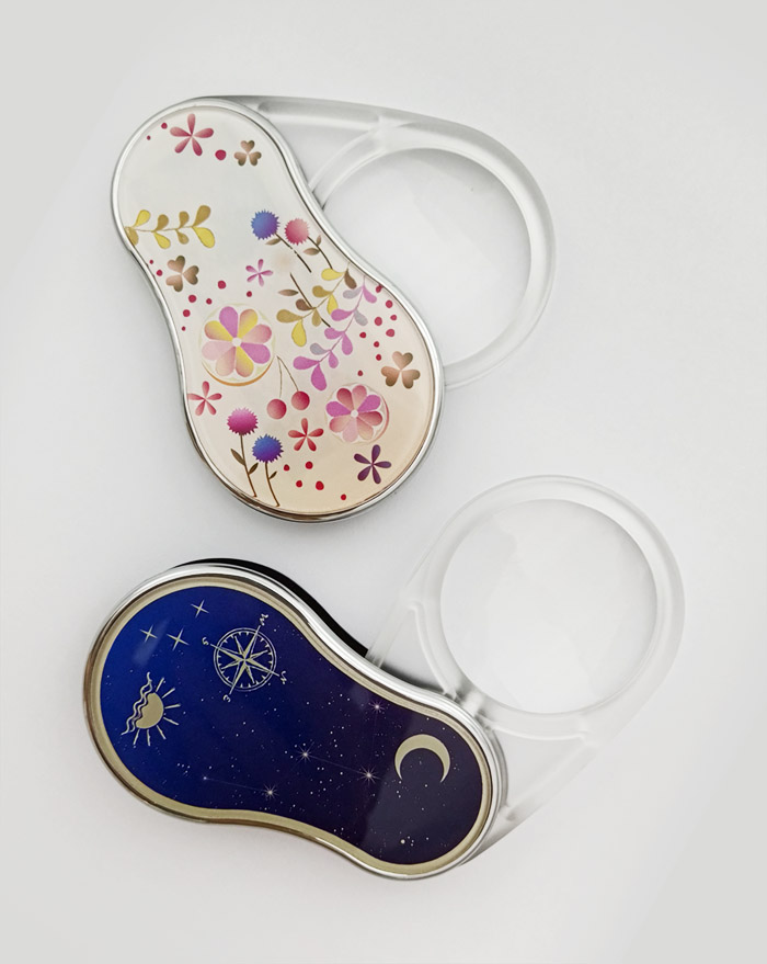 輕巧易於收納的設計,放在隨身包包或上衣口皆可,置於案頭還可成為書桌的裝飾,不要再拿偵探用的放大鏡了,放大3.5倍,還有附LED照明,讓您更方便閱讀。拿著它,心情都變得更美麗了。