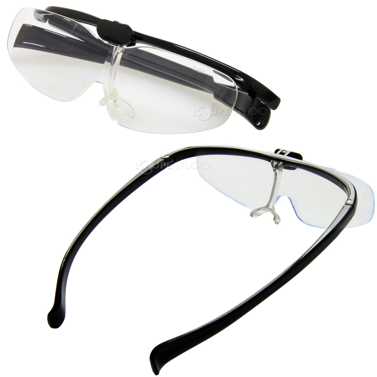 可直接配戴在一般眼鏡或老花眼鏡前方,即使需要交替使用,也無須將眼鏡拆來換去,只需要將鏡片向上扳即可。 ※ 雖然可以配合大多數眼鏡使用,但可能會不適用於特殊形狀的眼鏡。