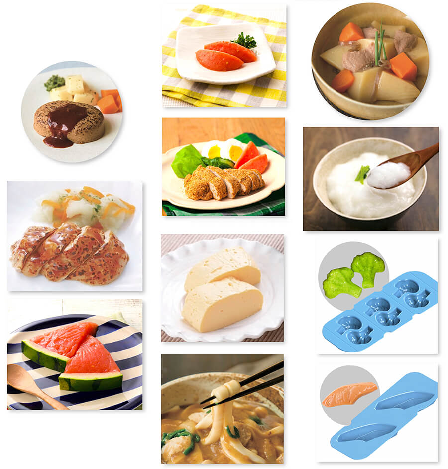 透過塑型模具,將調理過的泥狀食材,進行重新塑型,豐富佳餚菜色,提高長輩食慾,讓看起來跟吃起來一樣美味享受!