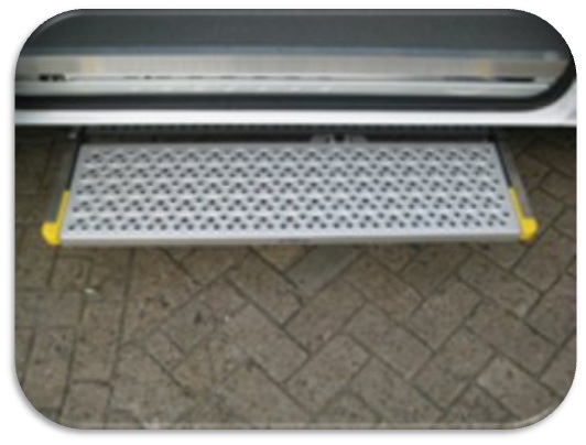 為了讓老年人、孕婦和兒童以及使用輔助拐杖的朋友,可以更安全方便的進出車廂,「多扶接送」安裝了德國原裝進口AMF BRUNS輔助防滑腳踏板。