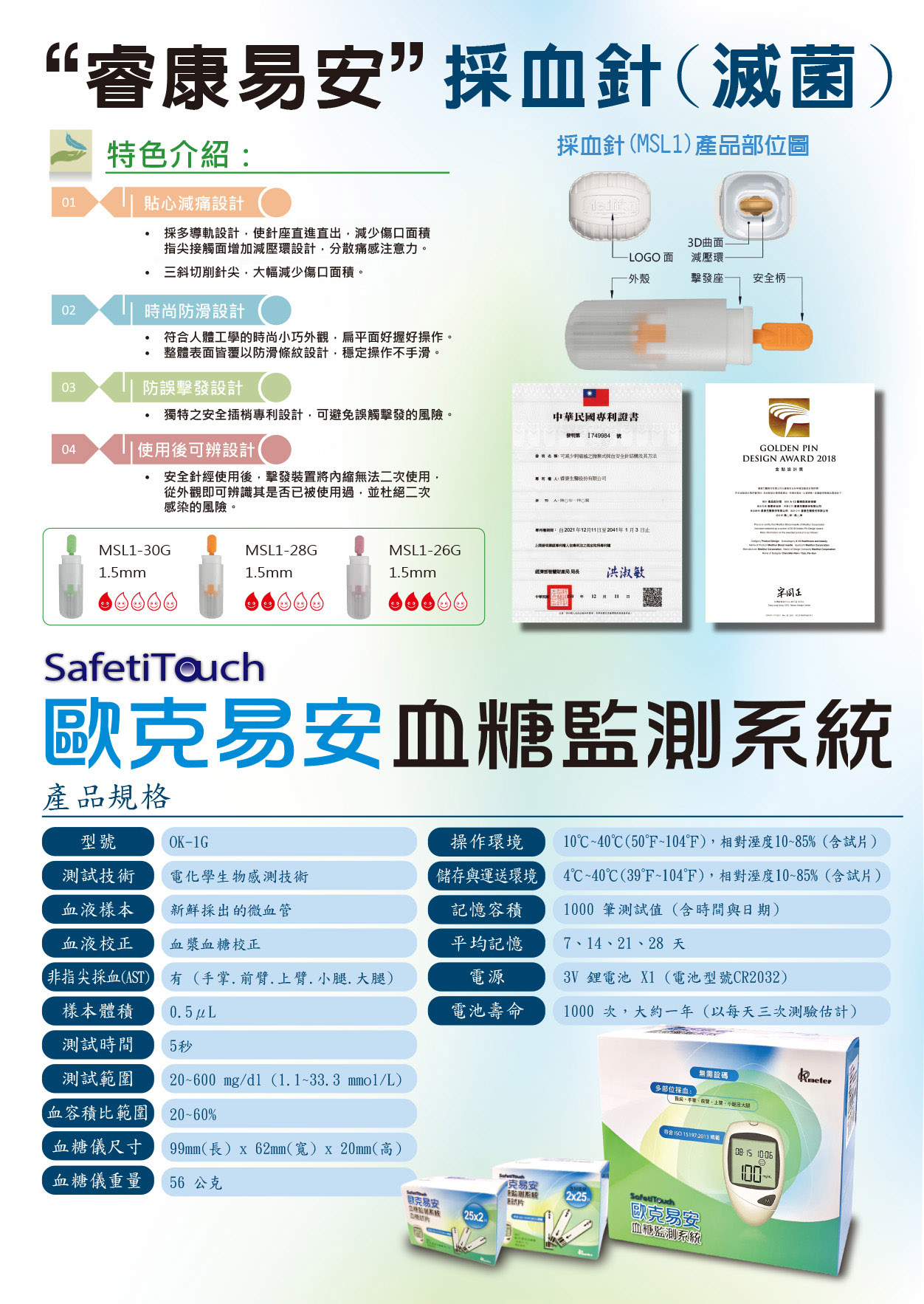 歐克血糖機(型號OK-1G):900元