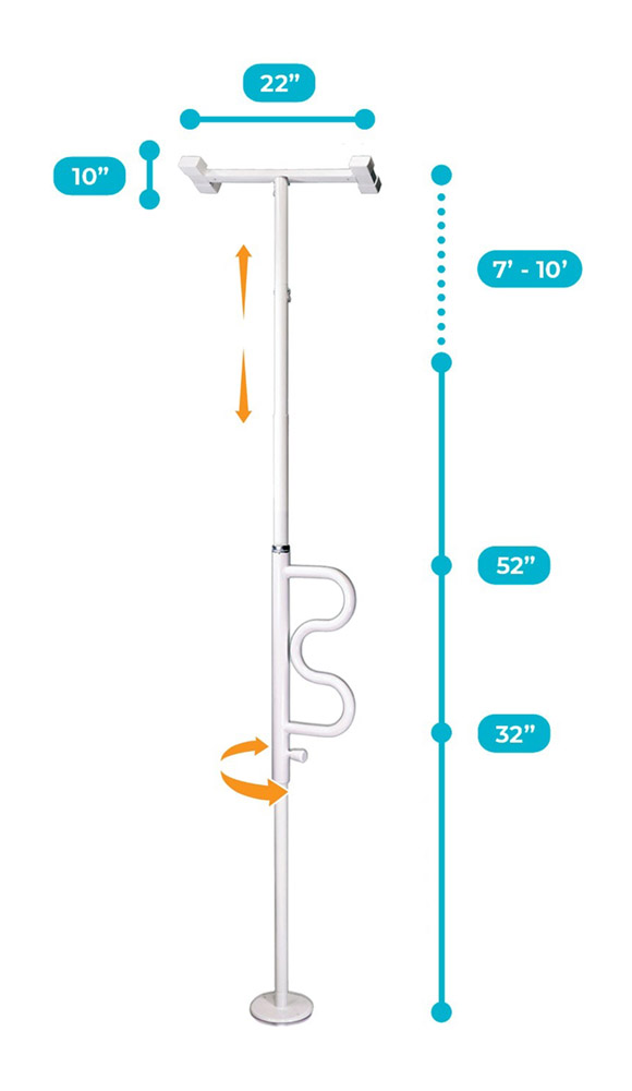 1. 利用所附工具將底座及天花板支撐架裝好