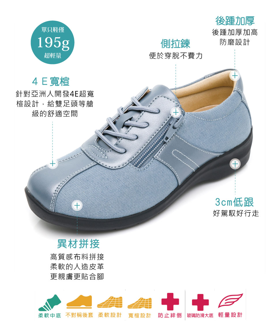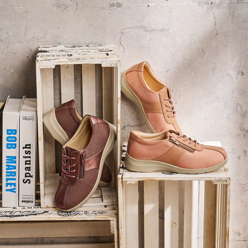 日本熟齡鞋大廠【Moonstar】所設計,提供喜愛休閒活動的女性鞋款。「やわらかさNo.1宣言」(號稱柔軟度No.1)鞋款,穿起來格外輕柔舒適,寬楦不緊繃、拉鍊設計穿脫容易、輕量設計輕負擔,是熟齡女性外出的好夥伴!