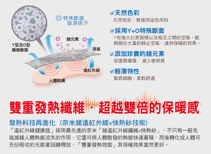 5. 材質本體 - 100%聚醋脂纖維 (黑快熱紗+鍺遠紅外線紗)