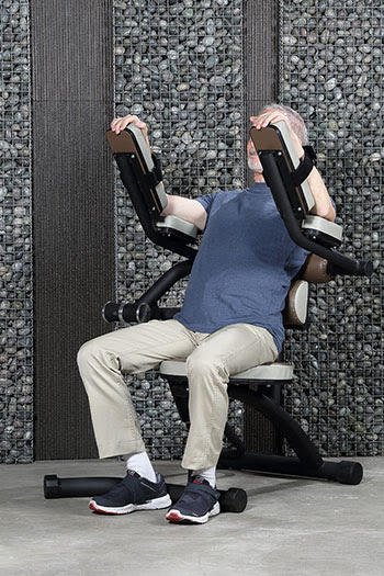 a. 雙腳與骨盆同寬 腳掌緊貼地板 臀部緊貼座椅 背部緊貼椅背過程中保持脊椎良好體線(收腹 肩胛骨內收下壓背打直 收下巴) 眼睛直視前方 雙手握住握把往下拉使肩部靠墊盡量貼住身體。